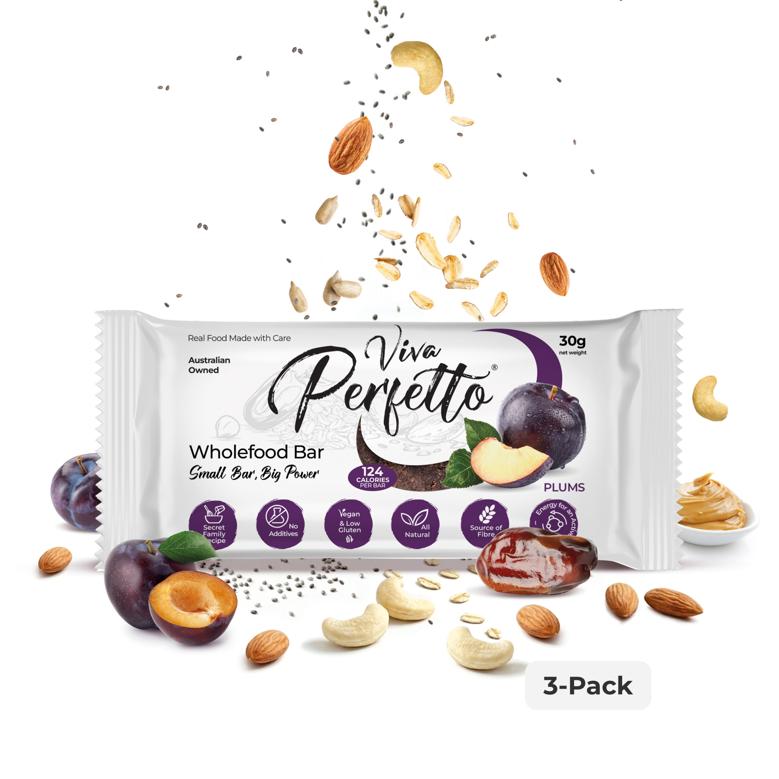 Juicy, tart plums blended with creamy cashews, almonds, and dark dates, with a signature mix of oats, peanut butter, and superfood seeds for a lush, fruity bite.